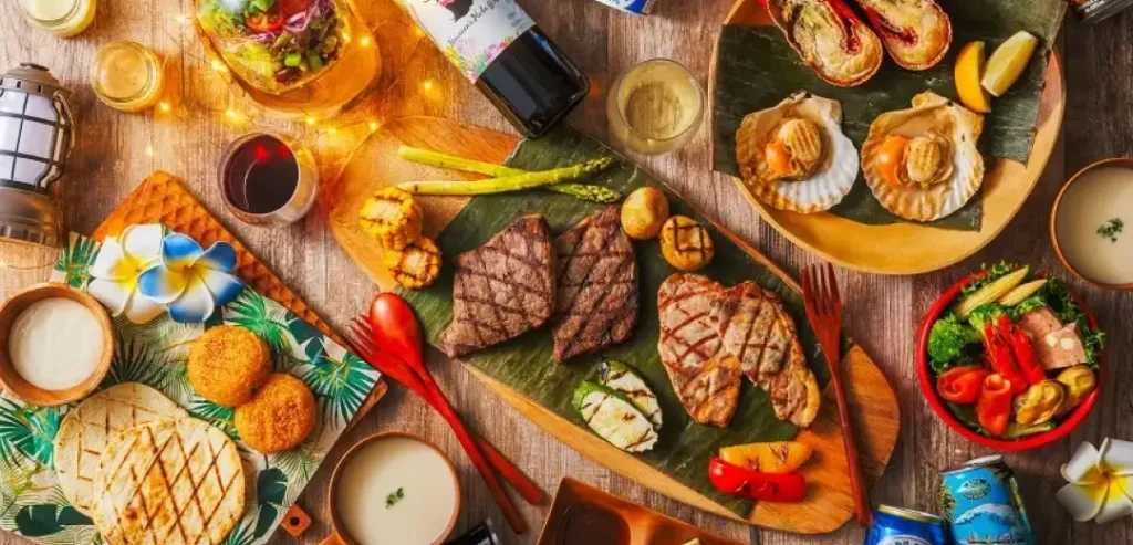 マウナヴィレッジでは、ホテルのビュッフェとは異なり、アウトドアらしい食事スタイルが中心になります。