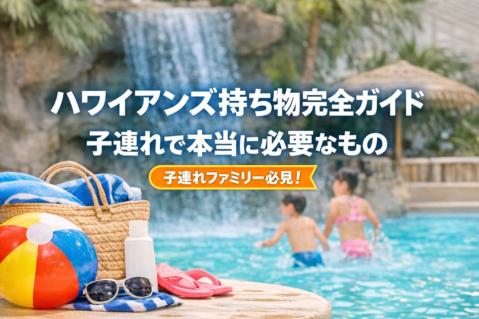 「ハワイアンズに行くなら、何を持って行けばいいの?」 「子連れだと荷物が増えるけど、逆に持って行かなくていい物も知りたい」 と迷う方は多いです。 特にハワイアンズは、プール・温泉・館内移動・ショー鑑賞が1日にまとまっているので、普通のプール施設より持ち物の考え方が少し違います。 この記事では、子連れで本当に必要な持ち物を「絶対必要」「あると快適」「なくても現地調達しやすい」に分けて分かりやすく整理します。 忘れ物を減らしつつ、荷物を増やしすぎない実用目線でまとめているので、日帰りでも宿泊でも出発前チェック ...